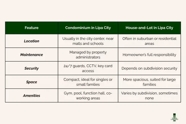 Before deciding between a condo in Lipa Batangas and a house-and-lot, it helps to understand their key differences.