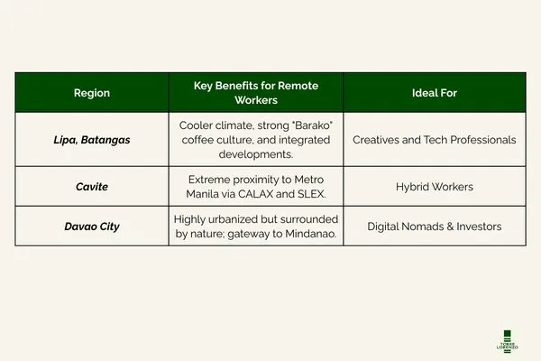 These locations offer a balance of accessibility, larger living spaces, and strong internet connectivity—making them ideal for productivity and long-term real estate investment in the Philippines.