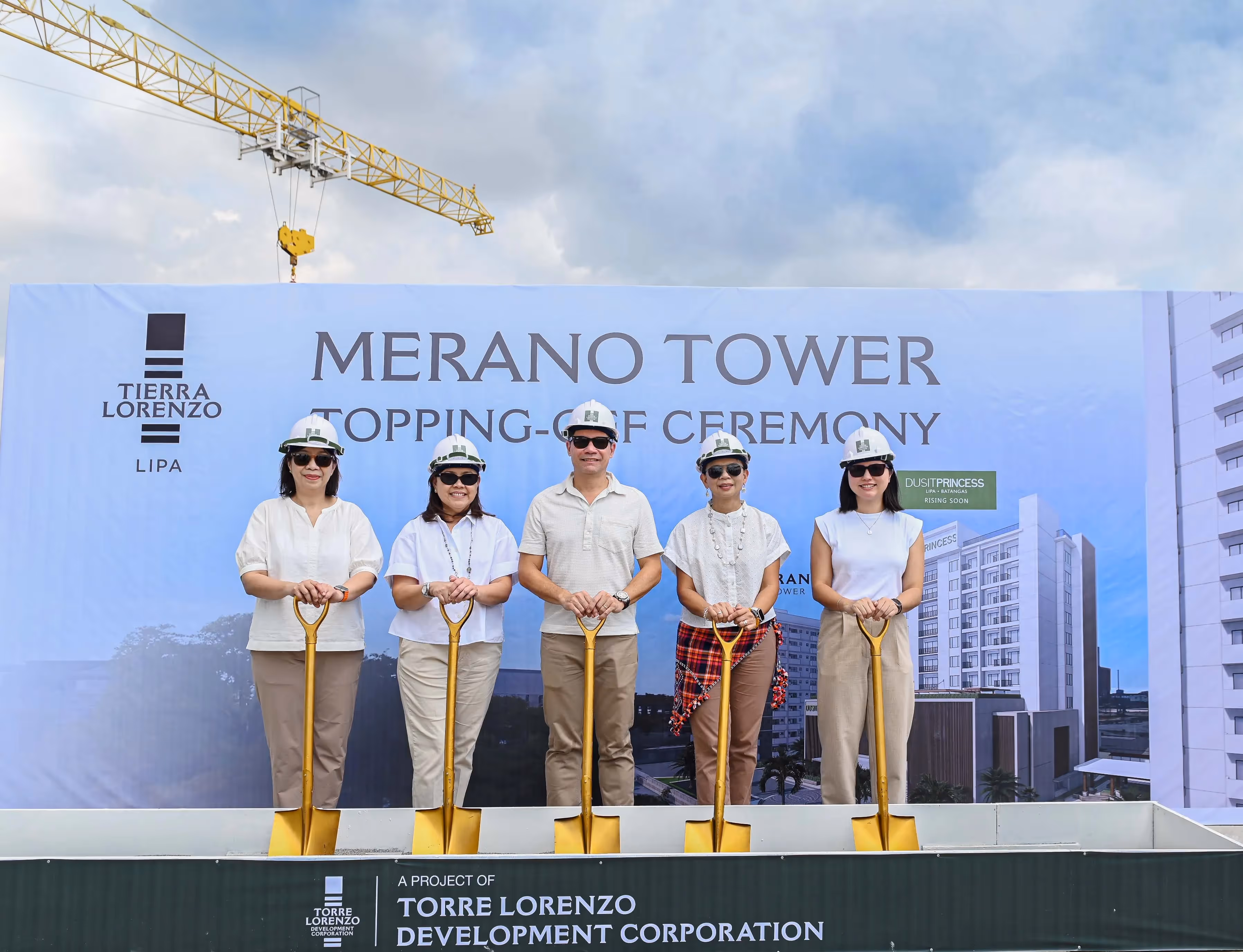 Merano Tower, the second residential tower from the integrated-use Tierra Lipa in Lipa City, Batangas, was topped-off in May 2024. Right beside it, construction is underway for the international hotel Dusit Princess Lipa, to be operated by Dusit International.